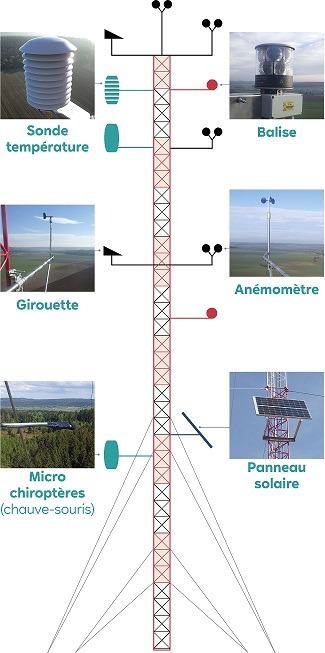 Un mât de mesure est installé depuis septembre 2022 afin de recueillir des données locales. Ce mât de mesure, d’une hauteur d’environ 124 mètres, est équipé de plusieurs types d’instruments de mesures, à différentes hauteurs : des girouettes (direction du vent) et anémomètres (vitesse du vent). Des micros à ultra-sons y sont également installés durant certaines périodes de l’année, afin de compléter les données de l’étude faune et flore sur l’activité des chauves-souris en altitude.